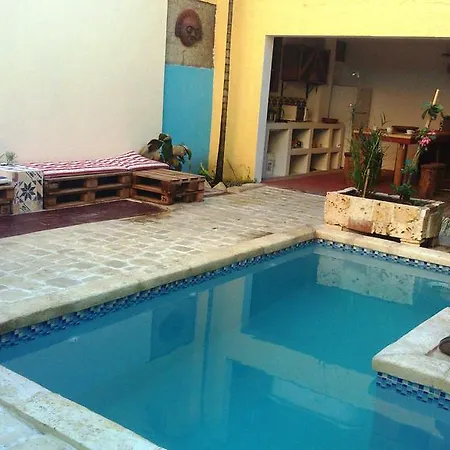 一年中の屋外プールは、La Choza Guesthouseにあります。